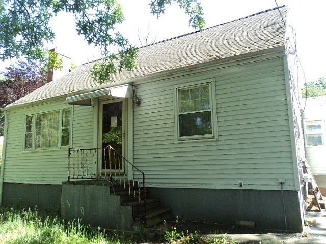 Cozy Cape needs some work but easy commute. Town records state there is 1.5 baths but house has two full baths. Also records state there is central air but no condenser found. Property being sold as is so buyer needs to do due diligence regarding water and sewer. Shared driveway with house in the rear.