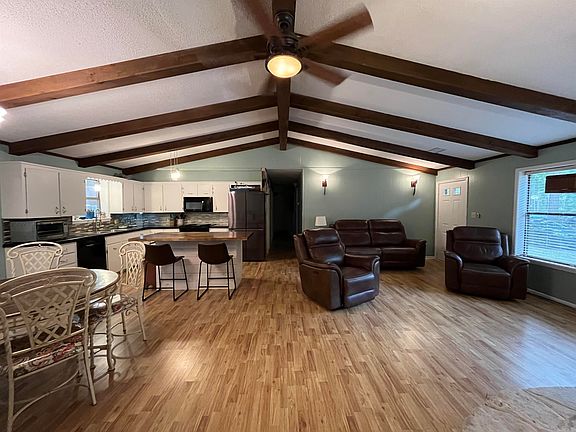 This 5-bed, 2-bath haven is a blend of convenience and seclusion. Step inside to a cozy living room, anchored by a grand gas fireplace – your ticket to warm, snug evenings. Five bedrooms offer endless possibilities – a home office, a meditation space, or perhaps a room dedicated to your sock collection? Your call! Outside, a secluded backyard invites lazy afternoons and gnome summits. Worried about storms? Fear not, your new home boasts a storm shelter for safety and peace of mind.Protect your vehicles from the elements with the two-car carport, leaving more time for lakeside adventures just minutes away.