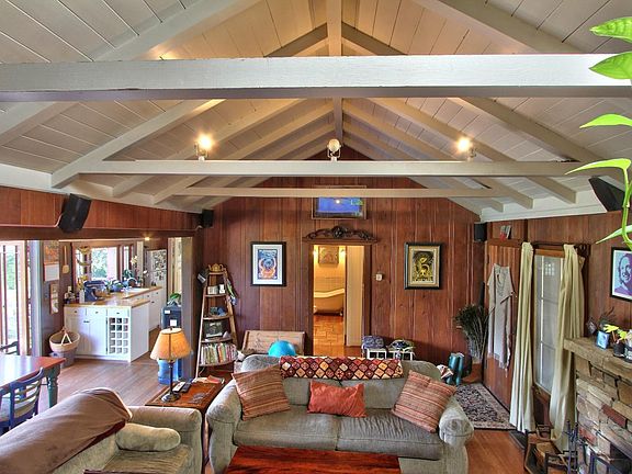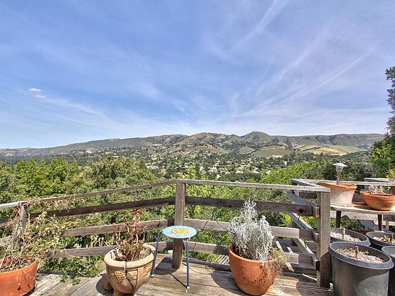 Charming, three bedroom, two bath, cottage over an attached studio apartment. Panoramic views of Carmel Valley village and hills. Living room with fir wood floors, open-beam ceiling and wood-burning fireplace. Kitchen has tile counters, painted cabinets, refrigerator, dishwasher, gas range and disposal. Large deck in back that leads to apartment under the house. Terraced yard in back with a fountain.