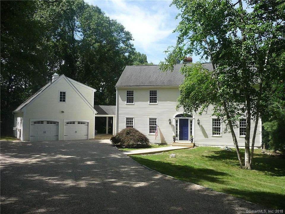 Charming Colonial with seasonal westerly views. Town lists with 4 bedrooms, 3 on second floor, 1 on first floor with adjacent full bath. Bonus room above 2 car garage has a full bathroom, might be used as office/entertainment area. The home is very versatile with lots of possibilities. Wood floors on first floor. Laundry Room on second floor. Newly remodeled Kitchen leads to Great Room with fireplace and sun room. Located on level lot on cul-de-sac.