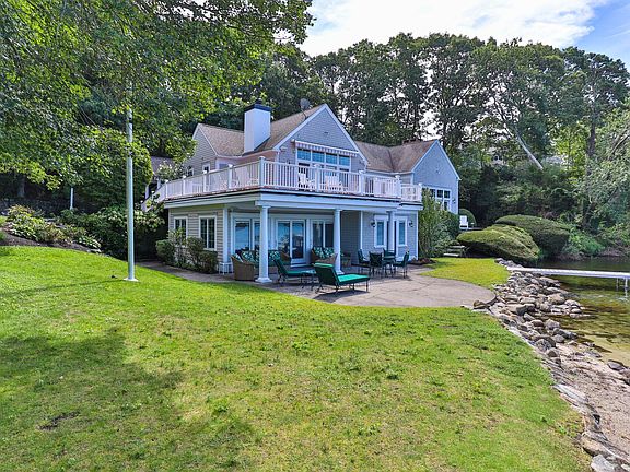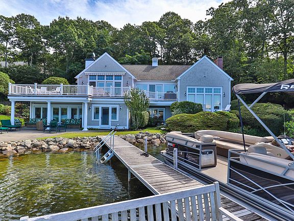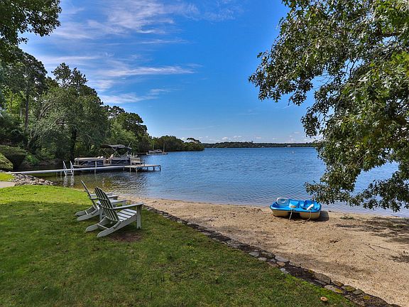 After 65 cherished years of family memories lakeside, this rare offering has been presented to start family traditions of your own in a private and serene location. Tucked down the end of a quiet street this custom built 4 bedroom, 3.5 bath retreat welcomes you. Once you pass your 2 car detached garage you are captivated by 2 chairs situated under a tree on lavish green grass overlooking your private beach and dock where you can park multiple boats. When you walk in the door you are immediately grabbed by panoramic views of the lake for every room to enjoy. The open concept living room, dining room and kitchen offer ample space for guests and doors that lead out to a huge wrap around deck, perfect for outside dining and entertaining. The primary suite is tucked on one side of the house with 12-14 foot vaulted ceilings, a fireplace, walk in closets and a spacious primary bathroom equip with a steam shower. Downstairs has your other bedrooms with en suite bathrooms and its own living and kitchen area. This lower level walks out to a sprawling patio for additional outdoor living space. A new heating system with central air and a new whole house generator have just been installed.