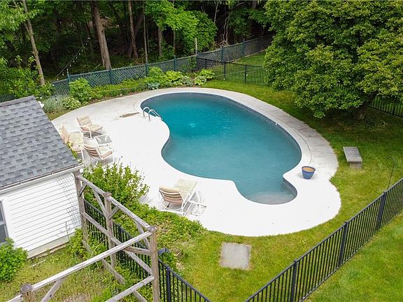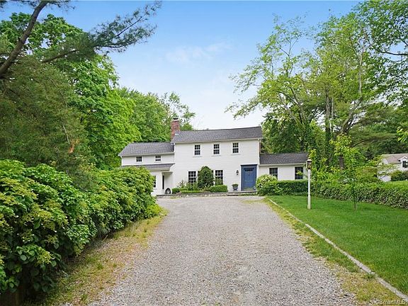 Pass between 2 stone walls and you'll discover one of the prettiest homes in Stamford. A converted antique carriage house w/ midcentury design and modern updates is perfectly set on 1.9 level acres w/ southern exposure allowing natural light all day long. Come see the specimen plantings including established specimen trees, 15+ varieties of roses, perennials and young fruit trees on a lush grassy yard surrounding a totally renovated and heated gunite pool and well appointed pool house (not included in sq ft). Inside you will find a versatile Main Level floor plan w/ spacious living room/fireplace, large bay window and stately built-ins, dining room & stylish chef's kitchen w/ quartz counter tops, herringbone back splash, skylight & top-of-the-line appliances. There are 2 main level bedrooms: the Master Bedroom is an oasis of charm & comfort w/ large bay windows, WI closet, New gorgeous bathroom w/ quartz counters, double sink & oversized shower; the 2nd bedroom w/ vaulted ceiling & partial bath could double as an office/library/den. The sunlit family room w/ generous windows allowing access to the Pool & backyard completes the main level. The upper level w/ all new wall/wall carpeting has 2 oversized bedroom w/ built-ins, full bathroom w/ tub & shower, generous closets including a hallway walk-in closet & attic for storage. Don't miss this opportunity to create and treasure lifelong memories in this wonderful home. SEE drone video(movie reel Icon) & matteport.