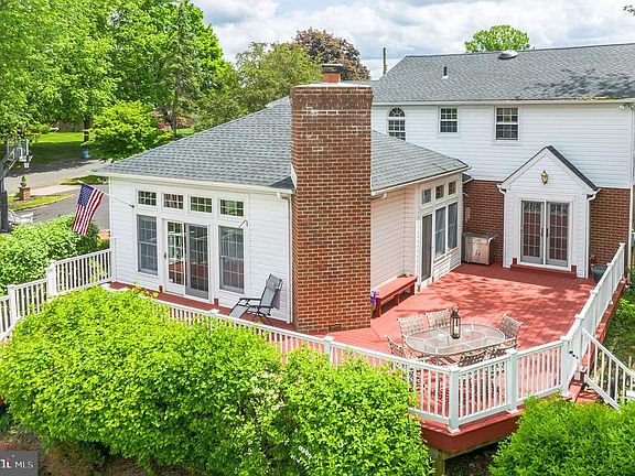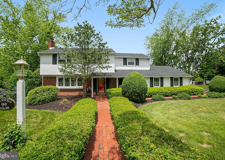99 Christopher Drive is a one-of-a-kind 4 BR, 3-1/2 Bath Colonial that is a sanctuary among the rolling hills of beautiful Bucks County, Pennsylvania. With welcoming curb appeal there's a lot to take in just on the outside of the house. A brick front walk with manicured landscaping & lamp post leads to a covered front brick patio. Brick pediments flank the driveway with paver threshold and a large turnaround with basketball hoop & Belgium Block detail. There's a PVC privacy fence to shield the trash/recycling cans from view and beautiful perennial gardens that lead to a rear entry foyer. Once inside you'll find lots of space including an office with a glass door to the foyer or double glass door to rear hall making it both private as well as connected. A generous living room with brick fireplace flanked with built-ins and a huge window with deep sill...is a quiet and serene space. The formal dining room features custom moldings, a newer chandelier plus wall sconces on each side of a double French door to deck. The centrally located kitchen offers an abundance of white cabinetry, an over-sized center island with granite counter & prep sink, a built-in desk, breakfast bar for two, wood floors, recessed lighting, a skylight and includes stainless appliances (gas range with microwave above, new dishwasher and refrigerator). When you step through the kitchen and into the adjoining breakfast room/family room addition, you'll go "WOW!" What a beautiful room with soaring coffered ceiling, commanding stone fireplace and walls of windows with glass transoms above, all with custom blinds and chunky trim, this is the space that you won't find anywhere else. Custom built in 1992 with crawl space below, this spectacular room boasts two exits out onto a wrap around deck that overlooks the park-like setting and beautifully private rear yard with kidney shaped Gunite pool and pool house. A rear entry hall with skylight boasts two closets, a powder bathroom and laundry room