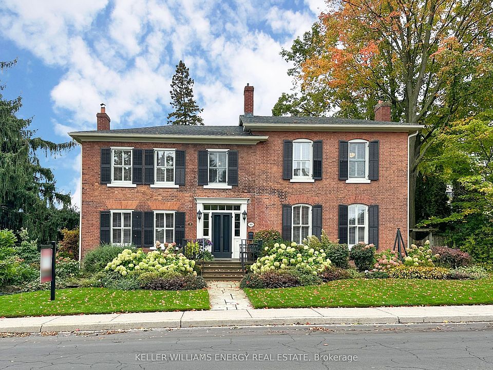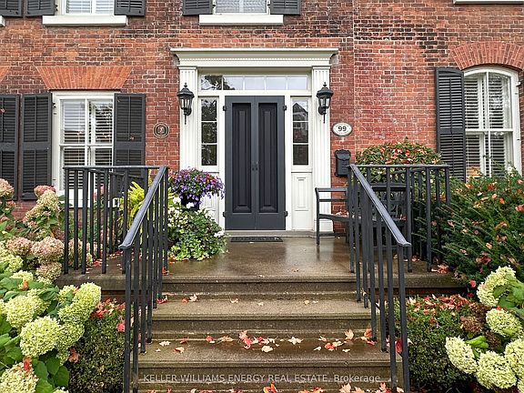 Welcome to 99 Church St. THE BLEAKLEY HOUSE>> Built is 1850 located in the heart of Bowmanville. This stately home is on a large corner lot that is adorned with extensive gardens and landscaping lovingly cared for by the same owners for the last 25 years. This beautiful home with attached garage has large principal rooms with wide pine plank flooring thru out, 14-inch baseboard trim, crown moldings, 2 staircases lead your way up to the second floor. Updated kitchen with 36"Wolfe gas range, subzero French door refrigerator with bottom freezer, dishwasher blended in with the cabinetry, built in microwave drawer in the island. Family room is combined with kitchen, great for entertaining, walk out to side yard patio. You will also find the laundry cupboard located on the main floor. Large living and dining room each with gas fireplaces, wide baseboard trim and crown molding. As you enter the home from side entrance you are welcomed with a large study with gas fireplace, built in closet and built ins for all your books and collectables. As you find your way up to second floor using 1 of 2 staircases you will find a large hall landing plus large primary bedroom with 2 closets, 4pc ensuite with soaker tub, along with 2 other large bedrooms, 3 pc bath and an office if you are needing to work from home. Side yard has wrought iron fencing, paved driveway with ample parking. Please see attached list of notables in regard to this lovely property. Please see attached disclosure in regard to decommissioned and buried pool and inside well.... Sold Conditionally .. waiting on deposit