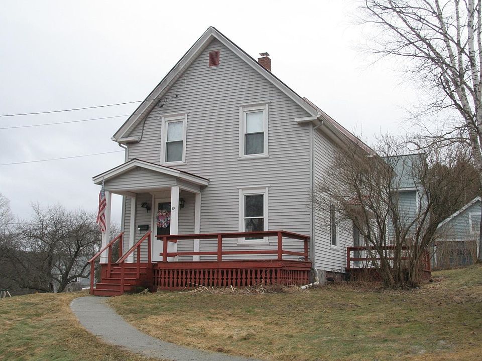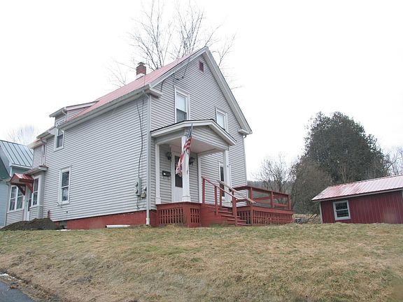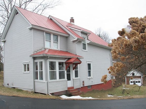 Located near the end of a dead end street at the edge of town, this home provides a secure place to live at a reasonable price. The first floor offers a living room, dining room with a play room or office adjacent, an eat in kitchen and a full bath. There is an enclosed porch off the kitchen, and there are two sun decks. Upstairs you have three bedrooms, a spare room and a 3/4 bath. There is a 2 car detached garage to protect your vehicles. With vinyl siding and a metal roof, exterior maintenance is kept to a minimum. Don't delay.