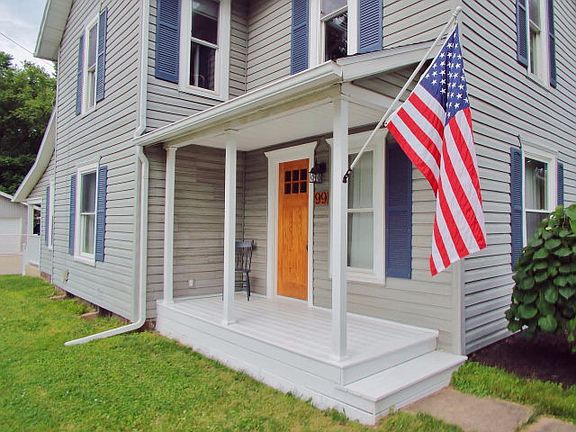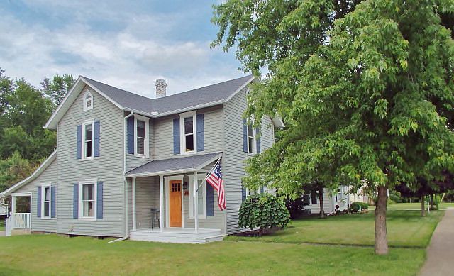 Picture Perfect! Completely renovated with wonderful touches including ceramic tile flooring, terrific lighting fixtures throughout, an awesome remodeled kitchen including gas cook top stove, dishwasher, new cabinets and more! Other great features include central air conditioning, 3 large bedrooms with great closet space, formal dining room, living and family room, as well as laundry and lounge area in the basement. Tilt in windows, newer roof, custom front door, remodeled bath, wood burning stove, and home boasts over 1500 sq. ft. of fabulous living space! A two car detached garage with work shop area, individual driveway- terrific yard, two covered porches- it's true- this home has it all!
