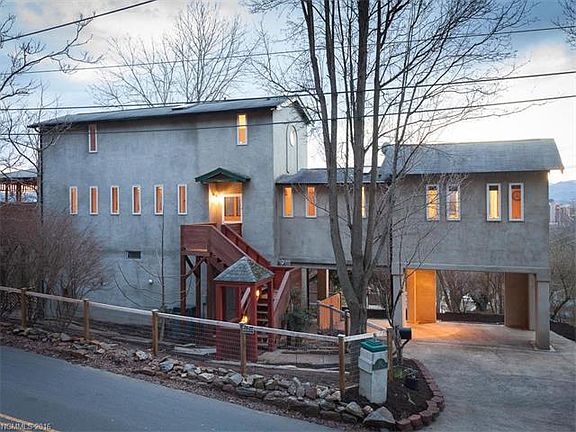 Magnificent Long Range Views from every room! Much more than a condo has to offer! Walk to Downtown Asheville from this 2/2 home. This thoughtfully designed home offers a bright, open flrplan, great for entertaining. Features incl. 2 master suites, LRG covered wrap deck, private balcony off 2nd level, LRG kitchen w/island, built-ins, carport, 450sqft light unfin. lower level w/ for storage/room to expand, fenced yard. One of a kind home w/ custom details & views that will take your breath away.