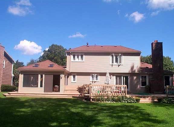 UPGRADES GALORE! MAGAZINE INTERIOR! Recent appraisal of $195K Totally remodeled & updated Contemporary! Hardwood flrs(09), vaulted ceilings, Huge great room with floor to ceiling marble fireplace. Lrg eat-in kitchen with 2 pantries! Formal dining, Heated cedar sun room with cathedral ceils & skylts. BRAND NEW master SPA bath w/multi head steam shower & jacuzzi tub-Must see! 1st flr Office/den. Large bedrooms. Basement w/sound proof media room. New tearoff roof(nov '09), siding, vinyl windows, insulation, gutters, huge wrap-around deck off kitchen and sun room, LARGE BACKYARD! DON'T MISS THIS!