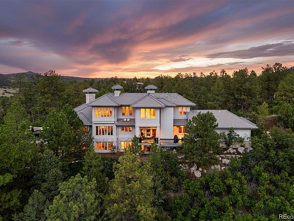 Commanding one of the most breathtaking vistas in The Village at Castle Pines, 99 Coulter Place is not like all the others: with sweeping Pikes Peak, Front Range, and Castle Pines Golf Club views, the grandeur of Colorado’s natural landscape is on full display at this infinitely intriguing 2+ acre property. Entering through the striking black steel frame and glass double doors to a myriad of cozy spaces, you'll find that this noteworthy 5 bedroom | 8 bathroom estate features abundant natural light and panoramic views at every turn. A warm, sophisticated great room anchors the home, while a gourmet kitchen showcases custom cabinets, quartz counters, and a sunlit breakfast nook. An adjacent hearth room creates a welcoming space for gatherings, while a formal dining room, powder room, and laundry room complete this level with thoughtful function and style. Connecting all 5 floors, a wood-paneled elevator is a testament to craftsmanship and convenience. Ascending upward, two bedrooms, one with a private en suite bath and the other with an adjacent bathroom, offer comfort and privacy. Moving higher, the crown jewel of the home is a sunlit office with inspiring views that sits right outside the primary suite appointed with a gas fireplace, 2 separate, updated en suite bathrooms, and expansive walk-in closets. Descending one level from the main floor, a spacious en suite bedroom, powder room, and sizable storage | expansion room enhance the accommodations. The walk-out lower level offers a billiards/game room, wine cellar, full kitchen, dry sauna, large 5th bedroom, additional bathroom, and a spacious recreation room. Outside, multiple patios, decks, and a flat yard create an idyllic setting for entertaining family and friends alike. With its scale, sophistication, and rare setting, this residence stands among the most distinguished estates in this coveted, gated community and is crafted for those who crave a timeless blend of transitional elegance and singular style.
