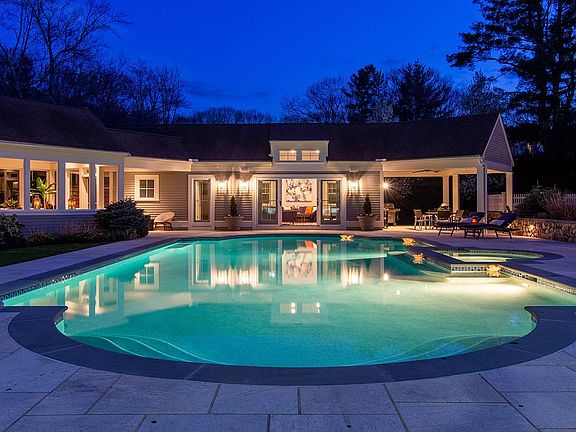 This exquisite and elegant estate sits on over an acre of lush resort grounds in the highly coveted Country Way neighborhood. Designed and completed by premier local builder this home boast details and finishes rarely found. Nearly 9,000 sq. ft. of living space in the main house including 6 bedrooms, 6 baths, front & back stairs & stunning entrance. The light filled chef's kitchen with large center island, sub zero & wolf appliances, opens to grand fire-placed family room & access to the most amazing grounds. Heated salt water pool, hot tub, sports court that converts hockey rink, professional lighting, pool house w/ kitchen, laundry, bath & fireplace, heated studio, dining gazebo, multiple patios, decks & entertainment areas. Coffered ceiling living room, dining room w/ butlers pantry & home office. Au-pair/guest quarters on 3rd floor with full bath, bedroom and living space. Full gym, game/pool room, workshop, tons of storage & full bath in basement. Nothing but pure enjoyment!