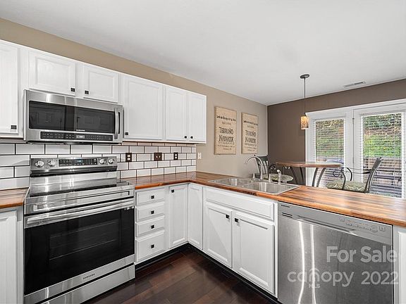This move in ready condo is in excellent condition and is conveniently located in downtown Brevard. The owner will enjoy the many interior updates that give this home a great look and feel. The main level floor plan includes an open living room, guest bathroom, laundry closet, and a spacious kitchen and dining area with access to an outdoor back patio area. The Kitchen is freshly renovated and includes new butcher block countertops, subway tile backsplash, stainless appliances throughout, and remodeled cabinetry. Upstairs includes 2 bedrooms which share a dual pass-through bathroom. Schedule your showing today!