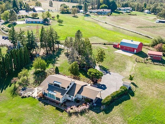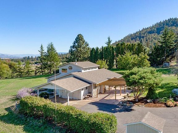 Remarkable home and property with stunning mountain & valley views. Nestled at the end of a cul de sac and in a great Central Point neighborhood, this property offers a 2,397 sq. ft. remodeled house, huge barn/shop/garage, 2 sheds, fencing and irrigation rights. The home features 3 bedrooms, 2 bathrooms, large living room, 2 dining areas, huge loft area w/ceiling fans & wood stove, hardwood floors, vaulted ceilings & small room/den. Wonderful kitchen has nice tile backsplash, abundant cabinetry & concrete countertop space. Great living room with pellet stove and glass sliding doors that lead out to the backyard. Master bedroom overlooks the front of the home, attached master bathroom. Laundry room w/abundant storage. Newer front siding & paint, 2 hvac systems, hunter douglas blinds. Large covered carport. Oversized barn/shop/garage has power & water. RV parking, pond & useable land that produced hay in the past. Home has a lot of natural light & is move-in ready.