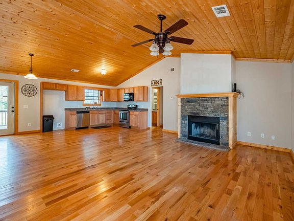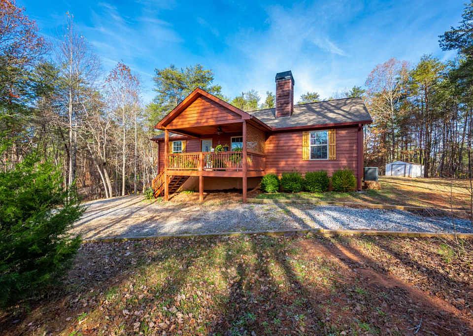 If your heart dreams of cabin life, look no further. This warm and cozy cabin features a great front porch. Set inside to beautiful hardwood flooring and the perfect open concept floor plan. Living room, kitchen, and dining area comprise the great room with vaulted ceiling and is grounded by a stone fireplace. This spacious area makes entertain a delight. The split bedroom plan allows for privacy. The master ensuite includes a walk in closet, separate shower, jacuzzi tub and double vanity. A back deck and level lot afford a great area for children and pets. Convenient location makes it easy to enjoy all the local pleasures of many surrounding towns as well as the outdoor activities of the north Georgia mountains. Priced to sell! Sellers have already moved! Square Footage is from public records and not guaranteed.