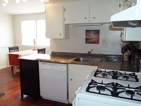 Cozy townhouse in move in condition! Sunny unit offers hardwood floors, many updates, central air, gas heat, deck and two parking spaces, well managed association, 2 bedrooms, updated 1.5 baths, eat in updated kitchen, full basement with laundry - could easily be finished - newer windows, easy to show!