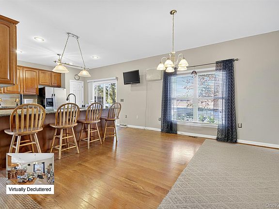 Step inside this homey oversized bi-level featuring a great room, adorned with a cozy fireplace, gorgeous hardwood floors, formal dining room, seating at the large kitchen granite peninsula with plenty of cherry wood cabinets (42") overlooking a good-sized deck, 9' ceilings. sizable pantry space and stainless-steel appliances.