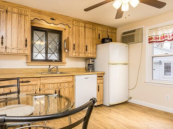 Welcome Home! Wonderful Updated Ranch that is "move in" ready! Many features including fireplaced livingroom w/ builtins, spacious eat in kitchen w/appliances [GAS stove], and newer Vinyl siding & replacement windows. There's so much extra space in the over 200sqft enclosed porch, and the basement has a double size familyroom (with exterior door) and 1/2 bath & laundry room with washer &dryer remaining. The lot is fenced in, offers a garage and a 10×20 covered patio for summer picnics! Some hardwood floors, ceiling fans and there's 2 wall air conditioners that cool the house comfortably! Must see, come to first open house Saturday 12/16/17 11-1pm