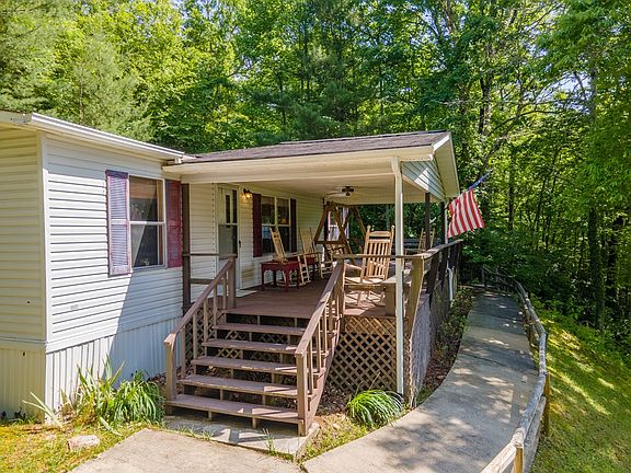 Peace and tranquility is what you will find at this well loved family home! Passed down through the generations and used as a mountain escape! Fully furnished 3 bedroom, 2 bathroom doublewide on 1.5+/- unrestricted acres! Expansive wrap around porch, furnished with rocking chairs and a porch swing for relaxing and enjoying the view. Inside has spacious bedrooms and w/ a some updating you can add your own design and style. Lovely eat-in kitchen that is stocked and ready to use! Travel along the creek to arrive at this property that has a large usable yard leading up to the home. With no restrictions come plant a garden, have chickens, bring the RV and enjoy all that this lifestyle offers. Flat gravel road making for easy access. If you're looking for privacy from neighbors, you'll love this setting!