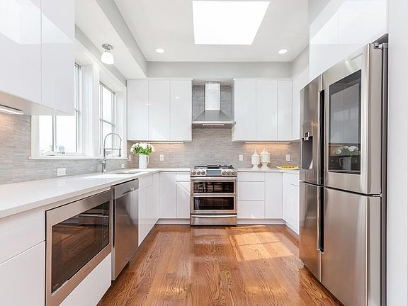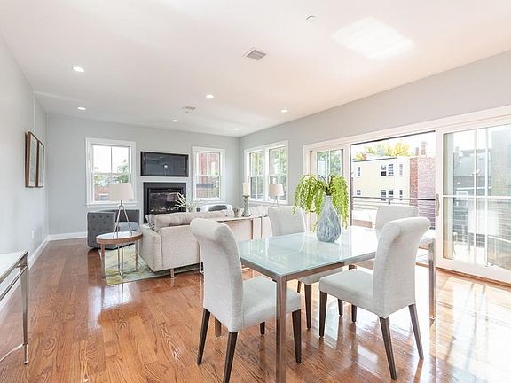 Enjoy direct elevator access to this stunning, sun-splashed penthouse with downtown skyline views. Quality features include red oak hardwood floors, open floor plan, 2-zone heat & A/C, master suite with large walk-in closet & marble bath w/dual sink vanity & radiant heat, high ceilings, recessed lighting, upgraded Samsung appliance package, high-gloss kitchen cabinets & trim, crisp quartz kitchen countertops, exterior kitchen venting, separate dining, in-unit washer/dryer hook-up, gas fireplace, skylights, & ample closet space throughout. Entertain in style on 2 large decks w/water, gas, & electric connections. What's more, this PH also has 1 parking space, additional storage, a common bicycle storage room, camera security, and sound attenuation between units. The Nines at Jeffries Point is a new construction, non-smoking and pet friendly association located just blocks from Boston Harbor, the T, and vibrant Maverick Square. It's everything you've been looking for. Welcome home!