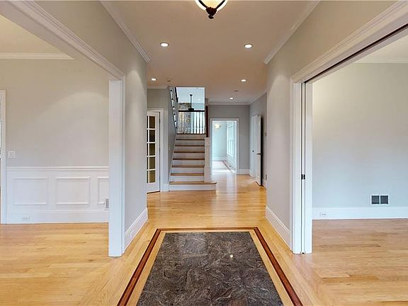 Welcome to this stunning gentleman's estate, nestled on almost 3 acres of professionally landscaped grounds right in a cul-de-sac neighborhood Driving up, you will enjoy the stone walls, stunning flowerbeds & the inviting front porch Upon entry, your eyes will feast on the open/bright floor plan, offering hardwood floors throughout, a den/office behind French doors and a formal dining room which displays shadow boxes, chair railing & crown molding. The grand two story family room features a coffered ceiling, a floor to ceiling fireplace, in-lay framing in the hardwood floors, custom mill work & many windows bringing in the views of the back yard inside. A kitchen is awe inspiring for any chef On one side are cabinets w/ a sink & wine chiller. The island has its own zip code and is surrounded by double ovens, built-in microwave, a pantry and custom cabinets. The large primary suite is on the 1st floor w/ a large W/I closet & and a luxurious spa-like bath, featuring a large European tiled shower, a Jacuzzi tub, double sink vanity & linen closet. Upstairs, you will find a sitting room, views of the family room, in addition 3 bedrooms & 2 full baths - plus a bonus room ready to be finished. You have laundry on the 1st and 2nd floors. The walk-out lower is finished w/a kitchen area, a media/pool table area & a full bath Sliders take you out to the in-ground pool area, sure to become a favorite spot in the summer and the landscaping makes it complete private. Truly a must see