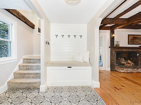 Stunning Antique Colonial beautifully updated and maintained. Situated on a quiet dead end street, this acre+ lot offers space to spread out with a huge side and rear yard. Over 2400 sq. ft. with an open floor plan and a perfect balance of charm with today's styling. Inviting fireplaced sitting area open to a renovated kitchen, SS appliances, granite counters. The sunny 4 season room addition is all glass and what a great dining room space complete with distant water views of Mill Pond! Enormous family room, beamed ceiling, pellet stove. Office/guest room, den/playroom, remodeled full bath, mudroom, rear stairway complete 1st floor. Upstairs - 3 spacious bdrms and remodeled full bath. Great bonus room used currently as a craft room. Walk-up attic. 2 car attached garages and large basement offers endless storage. Updates: heat 2008, hot water tank 2017, roof 2018, bathroom upgrades 2019, furnace liner, pellet stove 2019, Kitchen reno 2020. Minutes to commuter rail, major routes
