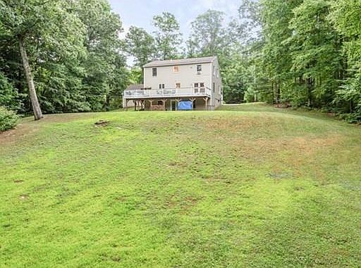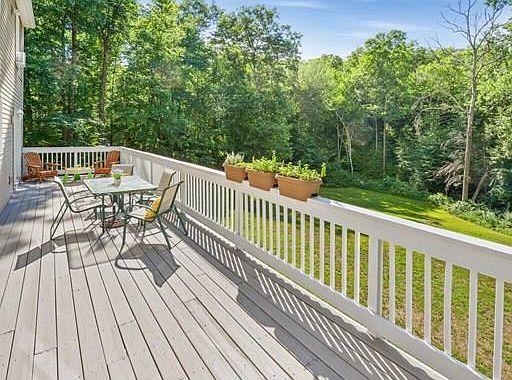 Charming Cape on 5 acres! Welcoming farmers porch leads to a lovely family room with fireplace, wood stove insert, wood floors and a modern open floor plan. Sun-filled kitchen with new QUARTZ counters, center island, coffee bar and wood floors. Spacious, separate dining room,1st floor full bath & desirable 1st floor bedroom/home office, perfect for generational family or private home office work space. French doors lead to a huge entertaining deck with private view of your 5 ACRES of sloped woodland trails, great for mountain biking, dirt bikes, ATV's and hiking. 2nd floor has desirable 3 bedrooms including a large primary bedroom with 2 closets, newly remodeled full bath with marble top vanity and 2 more bedrooms, all freshly painted w/new carpeting. Walk-out lower level would make the perfect man cave or studio/crafting area w/Buderus furnace, HW heater 2016 and 200 amp electrical. New paved driveway leads to a 2 car garage w/new poured cement floor. 4 bed septic installed in 2013!!