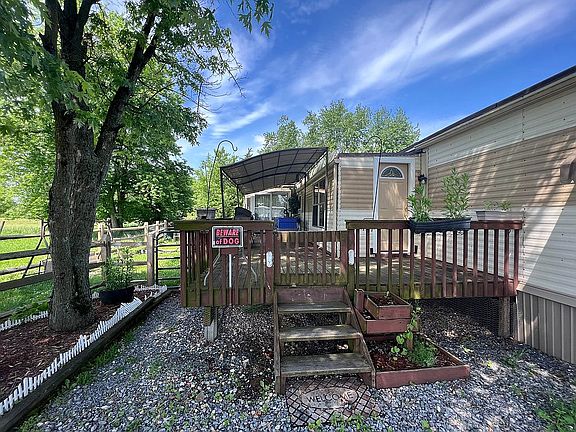 Spacious 4 bed, 2 bath expanded single-wide. Features a 3-car gravel driveway, large front porch, fenced in yard with 2 separate access gates, 1 standard-sized shed and 1 large-sized shed with high ceilings. The inside has an open layout for the kitchen, dining area and living room sharing the main common space. Master bedroom has 2 built-in closets and a master bathroom. Additional bedroom located off the dining area could also be used as a pantry or office. Down the hallway is the back door to the left and another bedroom on the right, washer and dryer, full bath and final bedroom.