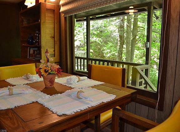 ESCAPE THE HEAT AND BUSY-NESS TO THIS COOL COTTAGE NESTLED IN THE TREES WITH BRANCH. LOCATED JUST OUTSIDE THE VILLAGE ON GALAX RIDGE WHERE YOU WILL ENJOY GALAX, RHODODENDRON & WILDFLOWERS IN YOUR OWN PRIVATE YARD.LOW MAINTENANCE; JUST SIT AND ENJOY THE COOL SHADE. KITCHEN HAS BAR AND SITTING AREA AND ADJOINS THE HUGE LIVING ROOM. FULL BATH ON THIS LEVEL. ENJOY FIRE IN THE WOODSTOVE. MAIN LEVEL HAS SMALL BEDROOM THAT ADJOINS A SECOND BEDROOM. THE UPPER LEVEL HAS A HUGE BEDROOM WITH BATH.