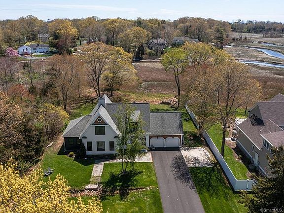 A SECLUDED WATERFRONT COMMUNITY AWAITS YOU Nestled between the East River, with access to Long Island Sound, and Bailey's Creek, this 4-bedroom year-round coastal home sits on a large 1.59-acre lot and offers fabulous salt marsh and river views from all rooms. The front entry mudroom with striking black & white tile offers a functional space and welcomes you to a light-filled interior where you'll enjoy casual living and dining spaces. The dramatic two-story living room features modern black windows, white shiplap walls, and a cozy wood-burning fireplace to warm you up during those colder winter months. There are three bedrooms on the second floor and a forth bedroom with a full bath on the main level, all offering fabulous views. Savor summertime BBQs on the back deck or relax and unwind on an Adirondack chair after a day of work or play while enjoying sunset views. Exceptional curb appeal, beautifully manicured landscaping, and a lush green lawn sweeping down to the salt marsh provides plenty of space for outdoor fun. Kayak from your backyard during high tide. Ox Pasture Trail is only steps away where you can catch a glimpse of bald eagles, ospreys, blue herons, and other wildlife. A unique opportunity to enjoy a true nature lover's paradise and only a short bike ride to the center of town and beach. Unfinished lower level walk-out provides ample storage space and perfect for those seeking a work shop. Ask agent for the list of improvements & amenities.