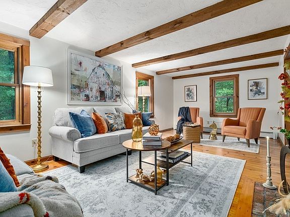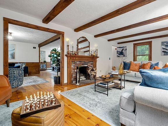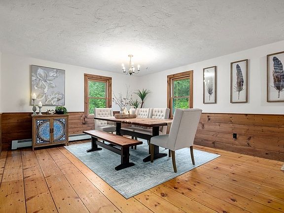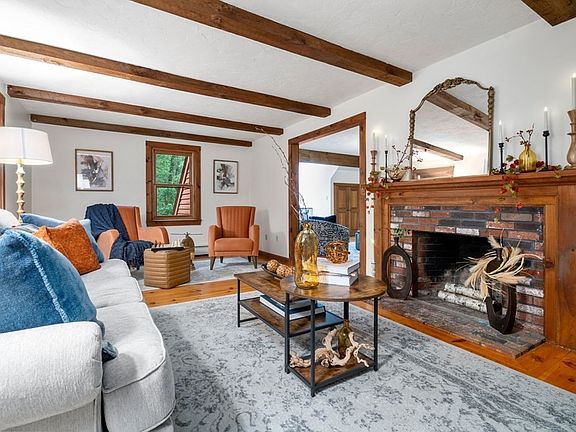 Embrace your love of history in this replica saltbox farmhouse set on a tranquil country road built in 1981. This home offers modern amenities for those with a love of yesterday. Granite steps and Ipswich wide pine floors add classic character. New oak stairs, and fresh paint grace the interiors. A first-floor balcony overlooks a private basement study, while a turret-style dining area & expansive deck with built-in seating overlook perennial gardens on well over an acre of private land. Updates include new windows, Buderus heat, and a remodeled bath. Includes a one car-under garage, easy access to major routes & excellent schools. This is quintessential New England living at its finest. First Showings at open house, Saturday 10-1.