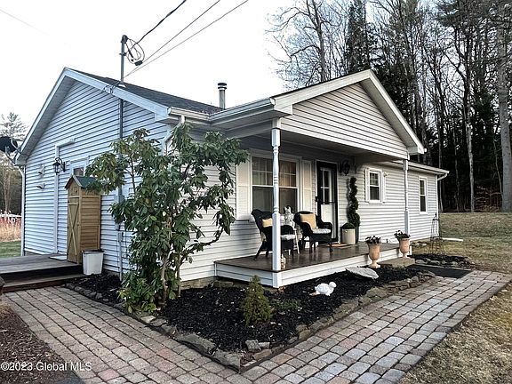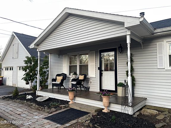 Lovely 3 bedroom, 1 full bath ranch in Greenfield, Saratoga Springs School District. Features include an open floor plan, gorgeous updated white kitchen with newer stainless steel appliances and custom cabinetry. Wood stove easily heats the home or utilize the new split unit for heating and cooling. Vaulted ceiling accentuates the bright living, kitchen and dining areas. First floor laundry. Open front porch and nice rear deck. .61 acre lot with 2 car detached garage and 2 sheds. New septic system December 2020. Leased propane tank for gas range.