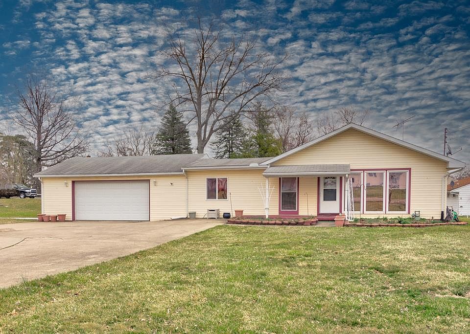 Bright and cheery well-maintained ranch in a super location. Enjoy your summer grilling on the back patio. Low maintenance vinyl siding and vinyl windows are a plus. Large living room and dining room. Eat-in kitchen for those cozy mornings and breakfast on the go. Hardwood flooring. Oversized 2 car garage recently drywalled. Large pantry. Covered front porch to enjoy sipping your favorite beverage while taking in the outdoors. Corn burner added on gas furnace.