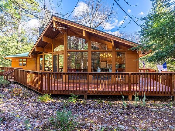 Spectacular 1996 Lindal cedar log home with open concept floor plan & large window making this bright and sunny and perfect for entertaining. Very private, surrounded by trees and located on a private dead end road. The owner has done many improvement with custom built in cedar wall units by a local artist, 2 car garage, Generator, screened in detached sunroom, new furnace, new elec. hot water heater and new water filtration system .The home is the Adirondack dream with interior cedar cathedral ceilings and large wood burning stone fireplace in the living room. The full basement has walk out French doors if you want to expand the living space. At one time this home had a good vacation rental history. Current owner does not rent. Many upgrades including new landscaping w/ lilac bushes and Japanese maple. Walk the path to the new dock & swim float on Loon lake offering great fishing, swimming, kayaking and is very private with NO public access 2021-11-15