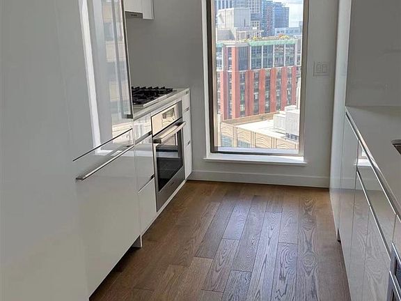 Be the first one living in this beautiful large one bedroom home. Residence 1901 at 99 Hudson is modern, elegant, and comfortable with floor-to-ceiling windows, wide oak flooring, and bright, open layouts. The kitchens feature premium-grade appliances by Bosch, stainless steel fixtures by Kohler, and a waterfall island with Quartz countertop, full-height Quartz stone tile backsplash, and vented hood by Italian manufacturer XO. The bathroom boasts a custom wood vanity with Quartz stone countertop, polished chrome fixtures by Kohler, and matte flooring and wall tiles. Explore the endless list of amenities 99 Hudson has to offer. It starts with an elegant triple-height lobby, full-time doorman and 24-hour concierge service by LIVunLtd. Entertain or be entertained in the 99 Hudson Club Room, which features a Lounge, Library, and Dining Spaces, and enjoy everything the screening room, game room, and children's playroom have to offer. Outside, be impressed by the expansive 80'x50' swimming pool, cabanas, grilling stations, and dog run. 99 Hudson offers everything and more, right on the Jersey City waterfront, close to great shopping, dining, and playing. And take the train, ferry, or car out for a quick commute into Manhattan whenever you desire.