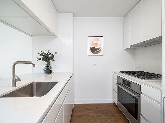 Welcome to your modern retreat at 99 Hudson! This stunning 1-bedroom, 1-bathroom residence offers a serene escape with floor-to-ceiling windows that flood the space with natural light and provide captivating southwestern views.Step into this meticulously designed home featuring premium finishes throughout, including custom white lacquer cabinetry and stainless steel fixtures by Kohler in the gourmet kitchen. The spa-like bathroom boasts a custom wood vanity with a Quartz stone countertop, polished chrome fixtures, and imported ceramic Statuario flooring and wall tiles, creating a clean and contemporary ambiance.Indulge in the array of amenities that 99 Hudson has to offer, including an expansive 80'x50' swimming pool with cabanas for lounging, grilling stations, and al fresco dining spaces, ideal for entertaining guests or relaxing on lazy afternoons. Stay active in the on-site fitness center with a dedicated Yoga, Pilates, and Meditation studio, or unwind in the screening room after a long day.Conveniently situated along the Hudson River waterfront, 99 Hudson offers easy access to shopping, dining, and transportation options, including just an 8-minute commute into Manhattan. Don't miss your chance to experience luxury living at its finest - schedule your private tour today