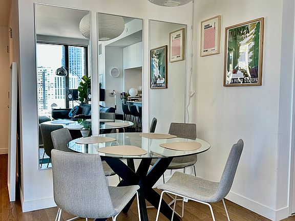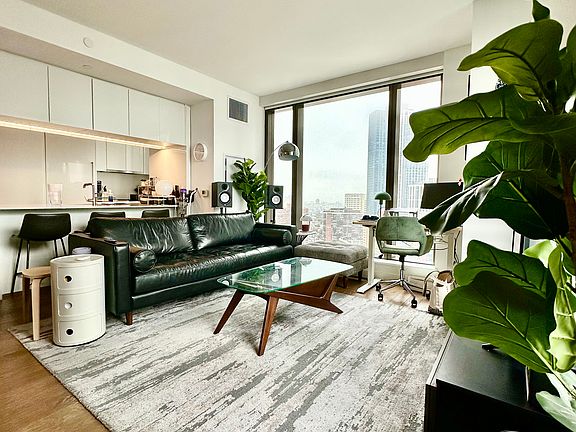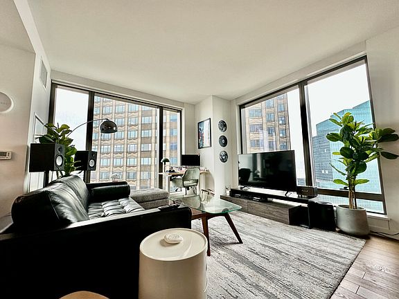 luxury living at 99 Hudson #2301, where floor-to-ceiling windows flood the space with natural light and offer stunning views of the Manhattan skyline. This open-concept home boasts premium finishes and fixtures throughout. The modern kitchen features custom white lacquer cabinetry paired with high-end appliances, perfect for both everyday cooking and entertaining. Enjoy the abundance of windows equipped with Hunter Douglas automated blinds for comfort and convenience. Residents have access to an impressive 65,000 square feet of resort-style amenities, including an expansive swimming pool with a landscaped lawn, grilling stations, and al fresco dining areas. Additional amenities include a lounge, library, and elegant dining spaces designed to elevate everyday living. Located along the scenic Hudson River waterfront, you're just steps from endless shopping, dining, and transportation options including the Exchange Place PATH station for an easy NYC commute. Renter is responsible for gas, electric, and internet.