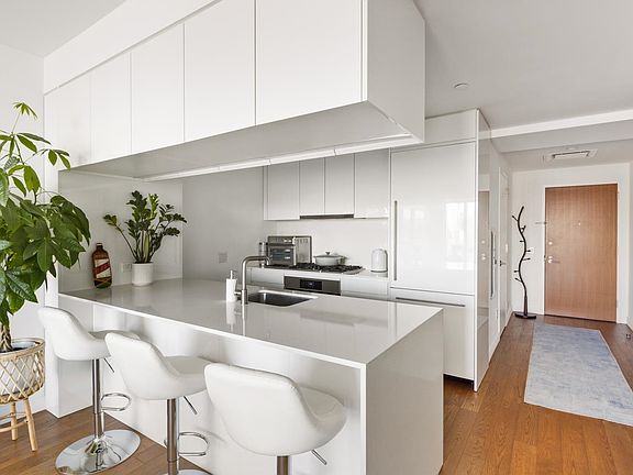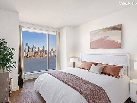 *Parking included* Enjoy direct NYC and Hudson River views in this spacious, bright, and sunny split two-bedroom apartment at 99 Hudson St, an amenity-rich condominium in Downtown Jersey City's Waterfront neighborhood of Paulus Hook, which offers an abundance of art, dining options, and convenience. Enter through a gracious foyer that leads to the chef's kitchen; equipped with top-of-the-line Bosch appliances and imported Italian custom cabinets. The attractive kitchen is separated from the living room by a generously sized island that provides seating for 4. You are welcomed into the living room by a wall of eastern-facing floor-to-ceiling windows that flood this luxurious home with sunshine and unbeatable views. The primary bedroom offers 2 large closets that lead to an en-suite bathroom with imported Ceramic Statuary Flooring and Wall tiles and custom millwork by Italian craftsmen. The secondary bedroom features a large closet and is off of another hallway that houses the second bathroom and a linen closet. The design and materials used throughout are a true testament to quality and craft with 5” wide oak flooring, high-performance insulated windows, energy-efficient heating and cooling systems with individual climate controls, and thoughtful pre-wired electrical systems. The sleek, neutral, and elegant interiors of this home create a wonderful canvas for your creativity. 99 Hudson offers 65,000+ square feet of resort-style amenity space, including an expansive 80’ x 50’ outdoor swimming pool with cabanas and grilling space, a screening room, game room, dog run, playroom, and an extensive wellness facility that offers top-tier gym equipment, a sauna, steam room, jacuzzi, and more. 99 Hudson is conveniently located 3 blocks from the Exchange Place Path station and the Ferry, which will both take you into Manhattan in about ten minutes, along with plenty of other public transportation options and easy access to major highways and tunnels by car. Whether accessing the building through its grand Hudson Street entrance or arriving by car via its private porte-cochere, the experience is elevated by sophisticated architecture and attentive professional service.