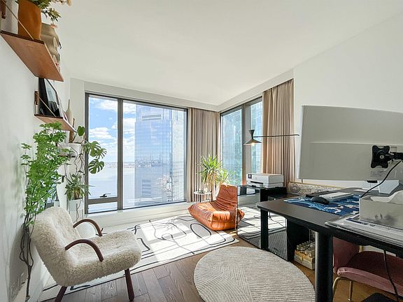 Available for move-in in early October. The rent includes water and cooking gas, with no amenity fee. One garage parking space on the 3rd floor near the elevator is available for an additional $300/month. Unit 2912 features a balcony with breathtaking views of New York City and the Hudson River. Its triple exposure (east, south, and west) fills the space with natural light throughout the day, offering panoramic vistas of One World Trade Center, New York Harbor, and Liberty State Park. Both bedrooms are corner rooms, exceeding expectations with double exposure and stunning views. The master suite includes a walk-in shower, while the second bathroom features a deep bathtub. The residence boasts custom Hunter Douglas window shades, 5" wide oak flooring, an energy-efficient heating and cooling system with individual climate controls, top-of-the-line appliances, and a garbage disposal unit in the kitchen. 99 Hudson is a full-service building offering 24-hour concierge service, on-site management, and a resident superintendent. The expansive 65,000 sq. ft. amenity space includes an 80 x 50 swimming pool with cabanas, multiple grilling stations, outdoor dining spaces, a landscaped lawn, kids playground, outdoor dog run, a 3,800 sq. ft. fitness center, resident lounge, library, demo kitchen, game room, screening room, business center, children's playroom, golf simulator, hot tub, and sauna. This prime location is just blocks away from PS 16, multiple parks, shopping, and dining options. Whole Foods is three blocks away in 2023. Convenient transportation options include ferry access to NYC, Exchange Place PATH station, and the Harbourside Light Rail Station right at your doorstep.