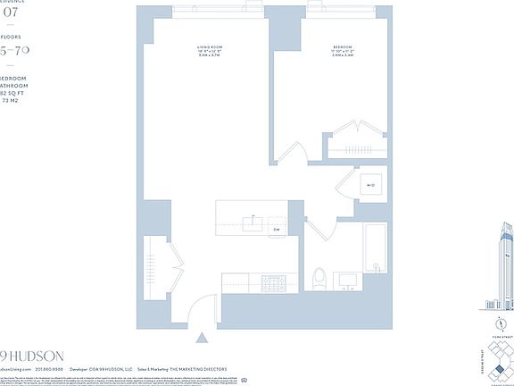 Residence 6507 at 99 Hudson boasts a front-load washer and dryer by Bosch, floor-to-ceiling windows, and an open plan design with premium finishes and fixtures. The kitchen features custom white lacquer cabinetry imported from Pordenone, Italy, stainless steel fixtures by Kohler, a vented hood by Italian manufacturer XO, and premium-grade appliances by Bosch. The bathroom boasts a custom wood vanity with a Quartz stone countertop, polished chrome fixtures by Kohler, and matte flooring and polished wall tiles that work together to create a clean, modern sanctuary. The 65,000SF of life-enhancing amenities at 99 Hudson include an expansive 80'x50' swimming pool, the largest residential pool in the state, grilling stations, and al fresco dining spaces. Indulge in a 3,800SF fitness center with a dedicated Yoga, Pilates, and Meditation studio, as well as a demonstration kitchen, business center, screening room, and golf simulator, all without ever having to leave the building. 99 Hudson is situated along the Hudson River waterfront and is in walking distance to the best parks and endless shopping, dining, and transportation options for just a quick, 8-minute train ride into Manhattan.