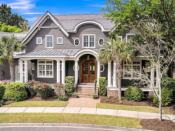 One of the most iconic homes on Daniel Island, 99 Iron Bottom is being offered for the very first time! This pristinely maintained home overlooks the 3rd hole of the Tom Fazio designed Beresford Creek Golf course and is one of the few homes available with a FULL GOLF MEMBERSHIP attached to the home. Skip the multiple year waitlist and start playing golf on Daniel Island's two private golf courses the moment you close on your new home! Timeless elegance meets picture perfect location in this Daniel Island masterpiece created by Buffington Homes. Buffington Homes is one of Kiawah Island's most prominent home builders, and they only designed and built a few select homes on Daniel Island. With just over 5,700 SF of living space, this 5 bed, 7 bath residence was designed with family andentertainment in mind. The home features cedar shingle siding, a slate roof, double porches on the rear side, a custom swim spa, a spacious first floor primary suite, and a grand kitchen which opens into the great room overlooking the golf course. Home also has an oversized elevator shaft on both floors. Not to be missed on the first floor is the light and bright sunroom that offers the perfect spot to enjoy your morning coffee, or afternoon cocktail while watching the sun set over the golf course. A large media room and a den accompany 3 additional bedrooms on the second floor, each with their own ensuite bathroom. One of the truly special and unique features of this home is the dramatic hallway bridge that connects the main home to a completely private guest suite. This side of the residence also offers an exceptional home office that affords you complete privacy from the main living area. Both the home office on the main floor and the guest suite above it have a separate private entrance to outside of the home - perfect for extended family, college kids living at home or a live-in nanny. Don't miss this unique opportunity to own one of the crown jewels of Daniel Island Park!