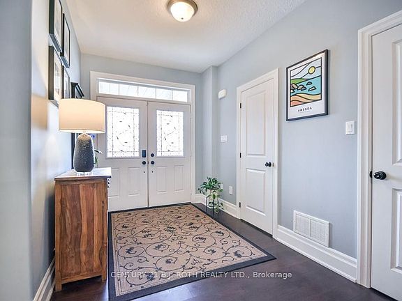 Welcome to this stunning Grandview Homes-built residence, nestled in one of South Barrie's most desirable neighborhoods. Backed by a serene, private forested area, this exceptional home offers the perfect blend of luxury, privacy, and tranquility. Step inside to discover a chefs dream kitchen featuring quartz countertops, an oversized island, abundant cabinetry, stainless steel appliances, under-cabinet lighting, and pot lights throughout. The adjacent family room invites relaxation with a cozy gas fireplace and custom built-in shelving, while the open-concept living and dining areas set the stage for elegant entertaining. A convenient mudroom with inside entry to the garage offers practical everyday function perfect for busy families and seamless organization. Walk out from the kitchen to your backyard oasis spacious deck overlooking lush greenery, a relaxing hot tub, garden shed, and full fencing for total privacy. Hardwood flooring flows throughout the main level, upper hallway, and staircase, highlighted by rich wood railings. Upstairs, retreat to the luxurious primary suite, complete with a large walk-in closet and spa inspired ensuite boasting a glass-enclosed shower, stand-alone soaker tub, and double vanity. Three additional generously sized bedrooms with soft carpeting offer comfort for family or guests, while the second-floor laundry room adds everyday convenience. The expansive lower level is a blank canvas ready for your personal touch perfect for a home theatre, gym, or additional living space. Ideally located near top-rated schools, scenic parks, Wilkins Beach, nature trails, shopping, and with easy access to Highways 11 and 400, this home delivers unparalleled comfort, style, and convenience.