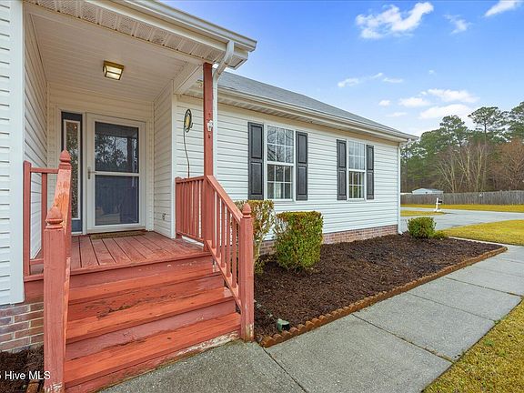 Come FALL IN LOVE with this charming home! Located in the desirable Kanton Ridge neighborhood, 99 Kanton Drive offers comfortable living just minutes from Camp Lejeune, MCAS New River, Stone Bay, and our wonderful local shopping and beaches. As you enter the foyer, the spacious living room boasts a vaulted ceiling, providing an open and airy atmosphere. A bay window accentuates the dining area and the galley-style kitchen is equipped with all major appliances, including a refrigerator. The washer and dryer hookups are also conveniently located adjacent to the kitchen.