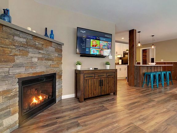 Welcome to this ground-floor renovated condo in picturesque Killington, Vermont. This modern farmhouse-style retreat offers a main suite with an open kitchen featuring stainless appliances and an island, a cozy dining area, and a living room with a smart TV and gas fireplace. The sofa bed and queen bed provide ample sleeping space. Indulge in the bathroom's amazing tile shower with body jets. Step outside to the outdoor patio and take in the beautiful surroundings. The condo also features a master bedroom with an ensuite bathroom, complete with a slate-tiled tub shower combo. Relax and enjoy your favorite shows on the smart TV. The king bed can be split into two twins, offering flexibility for your group. Stay comfortable with air conditioning and take advantage of the convenience of a washer and dryer during your stay. Throughout the condo, you'll find reclaimed barn board finishings, adding a touch of rustic charm. The sliding barn doors enhance the farmhouse aesthetic while providing privacy and functionality. This condo offers access to an outdoor swimming pool, open from June to mid-September. The serene setting and proximity to nature make it an ideal destination for outdoor enthusiasts and those seeking a peaceful retreat. Enjoy modern comforts like large smart TVs with streaming services, Amazon Alexa voice assistant, smart lights, and stainless steel appliances. The kitchen island and dining area with seating for six make it perfect for gatherings. Book with us and get great discounts on ski and snowboard rentals. Guaranteed early check-in or late check-out may be available for an additional charge. Located in the heart of Killington, this condo is just 3.0 miles from Killington Snowshed Base, 3.7 miles from Killington K1 Base, and 3.3 miles from Pico Mountain. Mountain Meadows Cross Country Ski and Snowshoe is only 1.0 mile away. The shuttle runs every hour from the front office building. For golf enthusiasts, Killington Golf Course is 3.0 miles away, and Green Mountain National Golf Course is 3.5 miles away. Enjoy nearby nightlife at Pickle Barrel, Wobbly Barn, Mary Lou's, and The Foundry at Summit Pond. Weddings can be celebrated at Killington Grand Resort, 3.1 miles away, and Mountain Top Inn & Resort, 14.2 miles away. The Rutland Regional Airport is 17.9 miles away, with Burlington International Airport 74.5 miles, Albany International Airport 103 miles, and Manchester-Boston Regional Airport 114 miles away. The entire property is non-smoking and non-vaping. You may only smoke or vape outside and must properly dispose of all butts. Quiet hours are from 10pm to 8am. Pets are not allowed, and there will be a $450 fine for any unauthorized pets. Smart locks are available for contactless check-in, and your unique access code will be sent the week of your arrival. Winter weather is unpredictable, and weather-related refunds are not offered. All-wheel drive and winter tires are recommended.