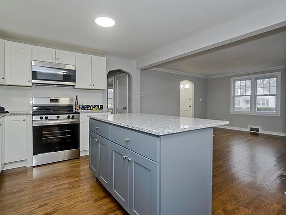 - Features: Flooring - Wood, Dining Area, Countertops - Stone/Granite/Solid, Kitchen Island, Open Floorplan, Remodeled, Stainless Steel Appliances