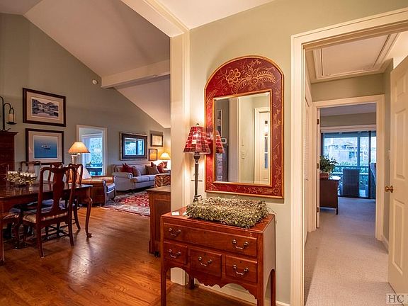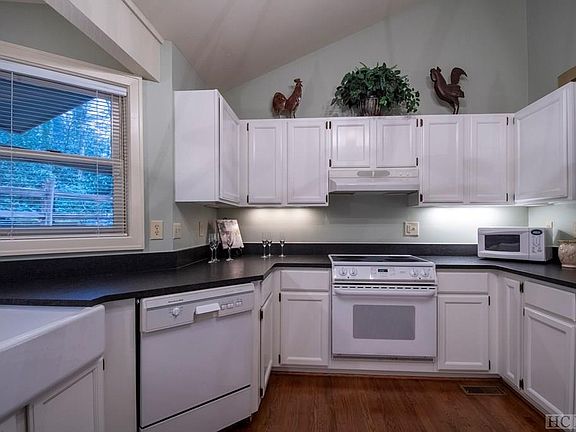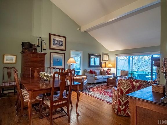 Immaculate, well-appointed Golf Villa in Highlands Falls Country Club with a commanding, peaceful view of the 10th green, the lakes around the Clubhouse and the ridges beyond. Beautiful stonework and lush landscaping greet you at the front of the home. Inside are vaulted, beamed ceilings, hardwoods in the great room, adjoining wet bar and kitchen, and a large woodburning stone fireplace. Sliding doors open the great room to the deck, expanding the living area outdoors. The deck is very private, has both open and covered spaces, a comfortable vaulted seating area and a separate dining area - great for entertaining or just relaxing and enjoying the view. The updated kitchen is huge and has tons of cabinet and counter space. The split floor plan provides privacy for guests and the master suite is vaulted with a large walk in closet and private deck access. This wonderfully located home is being sold mostly furnished and is just a quick stroll away from all Club amenities - or - take your own cart from the attached golf cart garage. Golf or Social membership is optional, ask about the attractive incentives if interested.