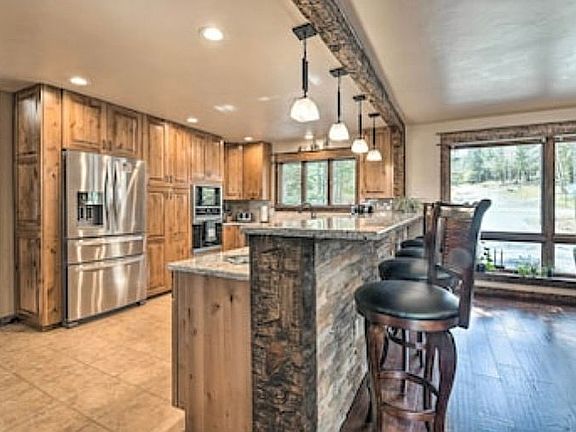This beautiful home can only be described as “rustic elegance” at it’s finest. One of the very few true lake front homes in Angel Fire. Look across the lake from your expansive deck to the Wheeler Peak, the highest peak in all of New Mexico. It's a stunning view to say the least, especially looking across Monte Verde Lake. This home was completely updated and remodeled in 2021. Vaulted wood ceilings, 4 large fireplaces, beautiful updated kitchen and master bath! This incredible home has room for a large family or just for simply entertaining in this stunning one plus acre setting. The master suite is on the main level and there is another master or a game room on the lower level with large fireplace and access to the lower patio and fenced area and the same incredible views. The asphalt circle drive on the main level makes for ease of access all year 'round and the asphalt drive on the lower level leads to a extremely large over sized garage with a workshop and storage. This home comes almost completely furnished with only a few exceptions. On the upper level you'll find a nice sitting loft and 2 bedrooms, each with their own bath. This home is truly one of a kind, come see for yourself.