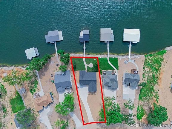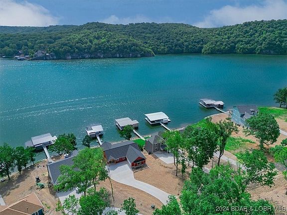 NEW CONSTRUCTION Lakefront Home! Cathedral ceilings in the main level living room, gorgeous granite counters throughout the home, large pantry off the kitchen, two master suites, and absolutely stunning lake views! With a true lake house floor plan, this layout has a second living space on the lower level with a custom wet bar, two large bedrooms that could easily fit 2 queen bunk beds in each, and washer/dryer hookups on both levels. Plenty of outdoor entertainment room with over 1,300 sqft of covered deck space, 18ft fire pit circle, and of course the lakeside sod grass yard with sprinkler system! Very few steps to the water and a gentle sidewalk to the brand new boat dock featuring a 12x32 slip, built in steps into the water, high dive, wet step ladder, fish cleaning table, plus a shed with a roll up door and bar top. Located on the 53 Mile Marker, enjoy calmer waters perfect for swimming, fishing, water sports, and still close to a few waterfront restaurants/gass like Red Fox, Coffman Marina, and Patriots Point. Nightly rental friendly, just over 2 hours from KC, high speed fiber optic internet, and move in ready! *Agent is owner. 2024-08-27
