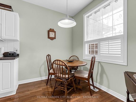 Well-maintained bungalow townhouse in a sought-after, North End St. Catharines location offering comfortable, low-maintenance living. Step inside to beautiful hardwood flooring and a bright, open main living area featuring a cozy gas fireplace, California shutters on the main floor, and garden doors off the living room leading to a composite deck--perfect for relaxing or entertaining. The eat-in kitchen includes all appliances and offers a convenient pass-through window overlooking the living area, creating a connected and functional layout. The home features a spacious main-floor bedroom, a five-piece main bathroom, and main-floor laundry, making it an excellent option for seniors or those seeking one-level living. The finished lower-level recreation room provides additional living space, with a rough-in for a second bathroom. Additional features include central air conditioning and central vacuum. Conveniently located near Port Dalhousie, shopping, parks, and walking trails.