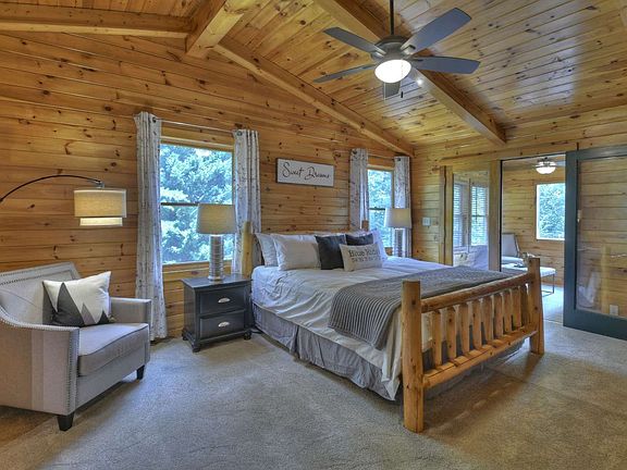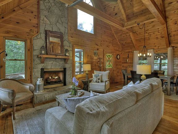 ^THE GREAT ESCAPE^ This 3BR, 3BA cabin is suitable for a full-time living, a weekend getaway or would make a prime investment/short term rental. Located in highly sought after My Mountain it is just minutes to downtown Blue Ridge & near Lake Blue Ridge recreation including Morganton Pointe & the Toccoa River. Easy access w/ all paved roads & circular driveway with lots of parking & 2 car detached garage. Nice usable yard is the perfect area for a fire pit or for the pets and/or kids to run and play. Enjoy a picturesque setting with beautiful mountain views from any level or any porch of this one. Screened in porch on main & terrace levels span the entire length of home. Main level has connecting deck & large covered porch across the entire front of home as well. 3 levels of living w/ a BR/BA on each level is the perfect layout. Master suite has private office/sitting area. Full daylight finished terrace level features Rec Rm/Den, BR/BA, laundry & storage. Can be purchased turn key, fully furnished.