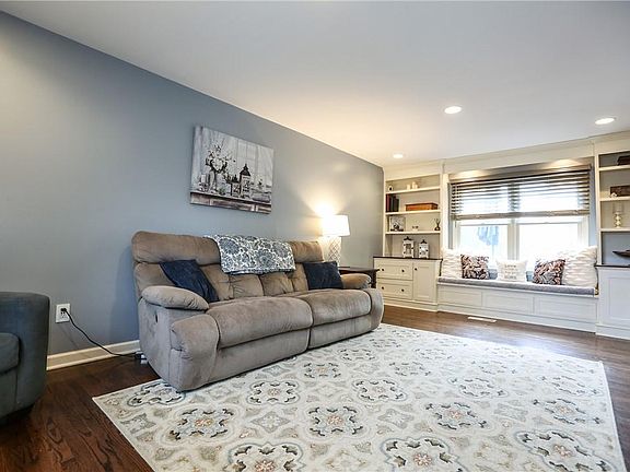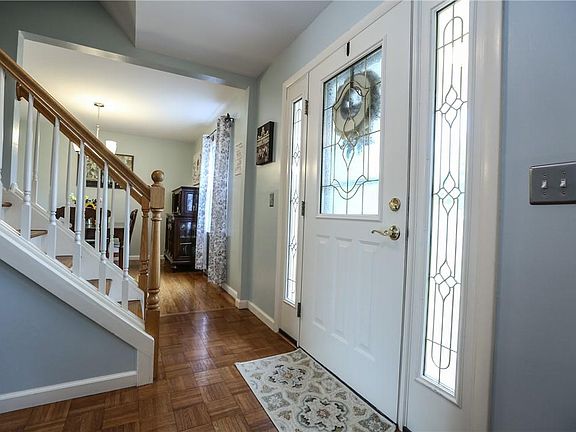 Lovely 3 bedroom, 2 full bath Penfield Colonial with Webster schools. Located in a quiet neighborhood, this home is situated on an over acre lot, with a fully fenced back yard & expansive deck. The spacious Living room features beautiful hardwood floors & a window seat with storage, flanked by built-ins. Gracious Dining room, also with hardwood floors. The eat-in Kitchen includes stainless steel appliances & sliding glass doors to the back deck. Convenient side entrance/mudroom is adjacent to the 1st floor full bath. Upstairs, youll find 3 generous bedrooms, including the Primary with 2 closets and remodeled 2nd full bath with dual sink vanity & built-in storage. The lower level Rec room adds another 250 square feet of space for work or play. Additional amenities include: 1.5 car attached garage with loft storage; Double wide driveway; shed; playset. Tear-off roof in 2006; Furnace & a/c in 2005; 50 gallon water heater in 2021. Showings to begin on Friday, 7/14 at 9am. Offers due Tuesday, 7/19, at 10am.