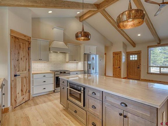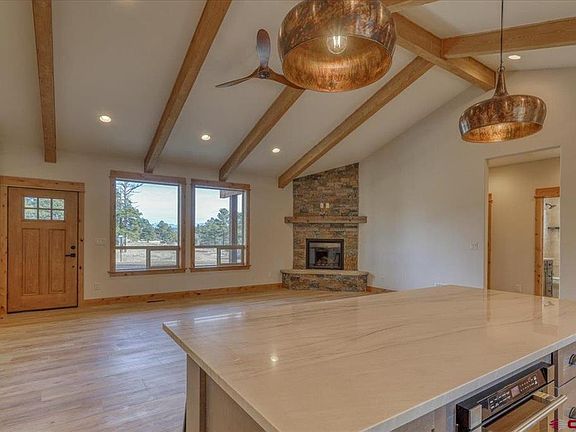 Brand New 2025 Trend Setting Style, that raises the bar on high quality craftsmanship! Located in Chris Mountain Village, Pagosa's hottest up and coming area in the Pagosa lakes, this one defines the Pagosa lifestyle! 1914 SF of sprawling single level luxury with an optimal low maintenance exterior and privacy promoting split plan design. 3 bedrooms, 2 1/2 baths, a dedicated office space, and soaring vaulted ceiling great room with mountain peak views, gourmet chefs kitchen with direct access to the large rear covered deck, and stack stone fireplace with custom mantle. Clean, low maintenance parking, storage, and front door covered porch entrance with large concrete parking pad, walkway and oversized 2 car garage with EV plug. Having two sides of green-space, a landscape of towering Ponderosa pines, private trails, and BLM just a few steps away, county maintained roads, central water, sewer, and electric, along with every convenience in uptown Pagosa able to be accessed in minutes...this one has it all and then some! As a property owner in the Pagosa Lakes enjoy the privileges of having multiple private forest gate access points leading to our over 2.8 millions acres to roam, purchase a membership to the fully staffed recreational center, travel miles of paved bike paths, fish, paddle-board and kayak in the many stocked lakes. Explore the endless fish rich live river waters, Pagosa's 27 hole golf course, our famous world's deepest hot springs and winter fun at Wolf Creek Ski. See the full finish details and upgrades in the addendum section or call to request the complete list. The elevated upgrades that this home features, are impressive! Virtual inspiration has been included to fuel your excitement and share a vision! Schedule your private showing.